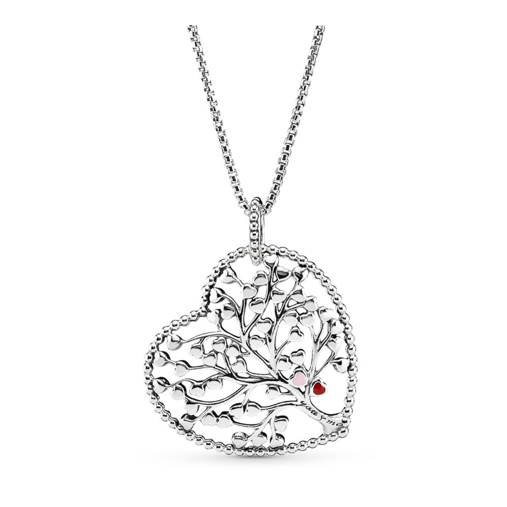 Crafted in sterling silver the beautiful pendant features an intricate tree of life. Keep your loved ones close with the Heart Family Tree Collier Necklace. AUTHENTIC Pandora Necklace Silver Pave Double Circle Chain 399487C01-45.